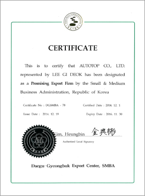AUTOTOP has received certifications from various organizations for its outstanding products and systematic management system.